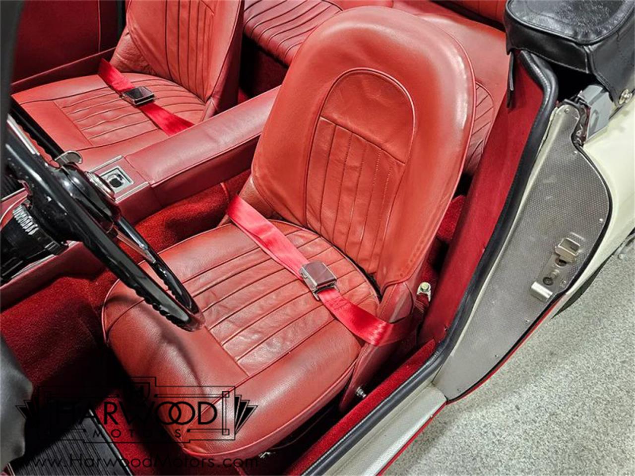 This car is just gorgeous!The red leather interior is part of why we love this Healey so much.